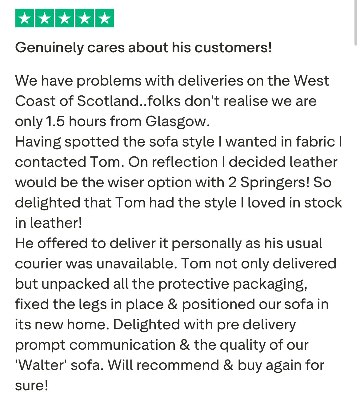 - Dedicated aftercare support to ensure your sofa looks and feels its best for years to come